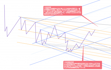 どういう流れでこの考え方に至ったか 目線を確定させて、同時に損切りも確定させたかった。というのも、特に損切は固定ピップスでやることが多く、あまり深く考えてはいなかったと思う。自分の耐えられる損失の痛みに合わせて損切をしていたから。そのための観測方法を作りたかった。目線を確定させるためにはトレンドの終 […]